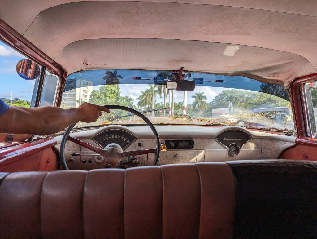 After a red eye flight from Bogota we arrived in Havana sleep deprived. A taxi was waiting for us. It was a 1956 Chevy and shortly before we reached our destination, it broke down. The driver and a helper got out to push the car over a small hill and it started up again. No fuss or complaints.