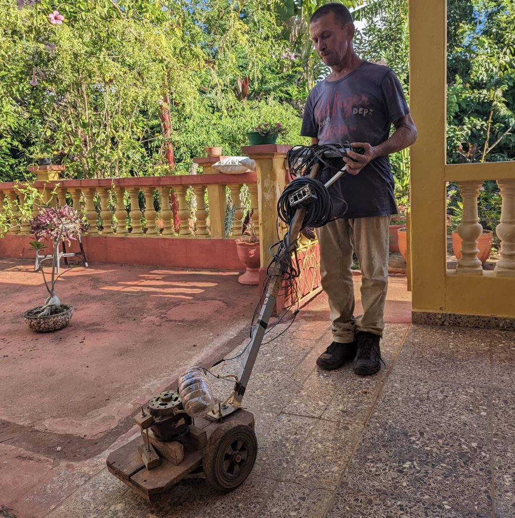 Due to economic conditions, consumption is very limited in Cuba. Given the comparatively less developed industry and technology and the difficulty of getting items from abroad, Cubans resort to reuse and recycle. An good example is the lawn mower one of our hosts had built. For this he used parts of a washing machine, telephone cable, and a machete. Our host had saved those items from a different fate at the dump while creating an eco-friendly machine with near-zero carbon emissions.